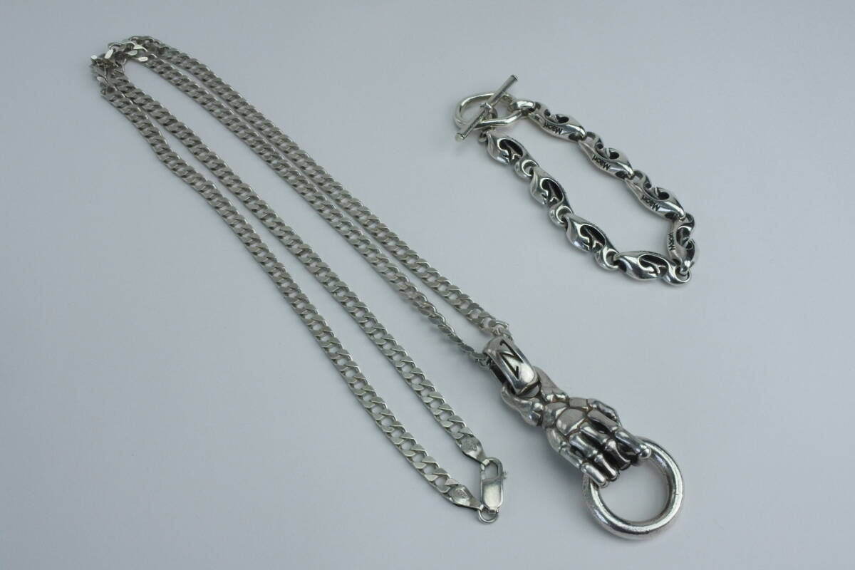- ☆ ITALY製 銀925ネックレス と MAORI(マオリ族、ニュージーランド)銀925製 ブレスレット 重さ:93g 中古逸品