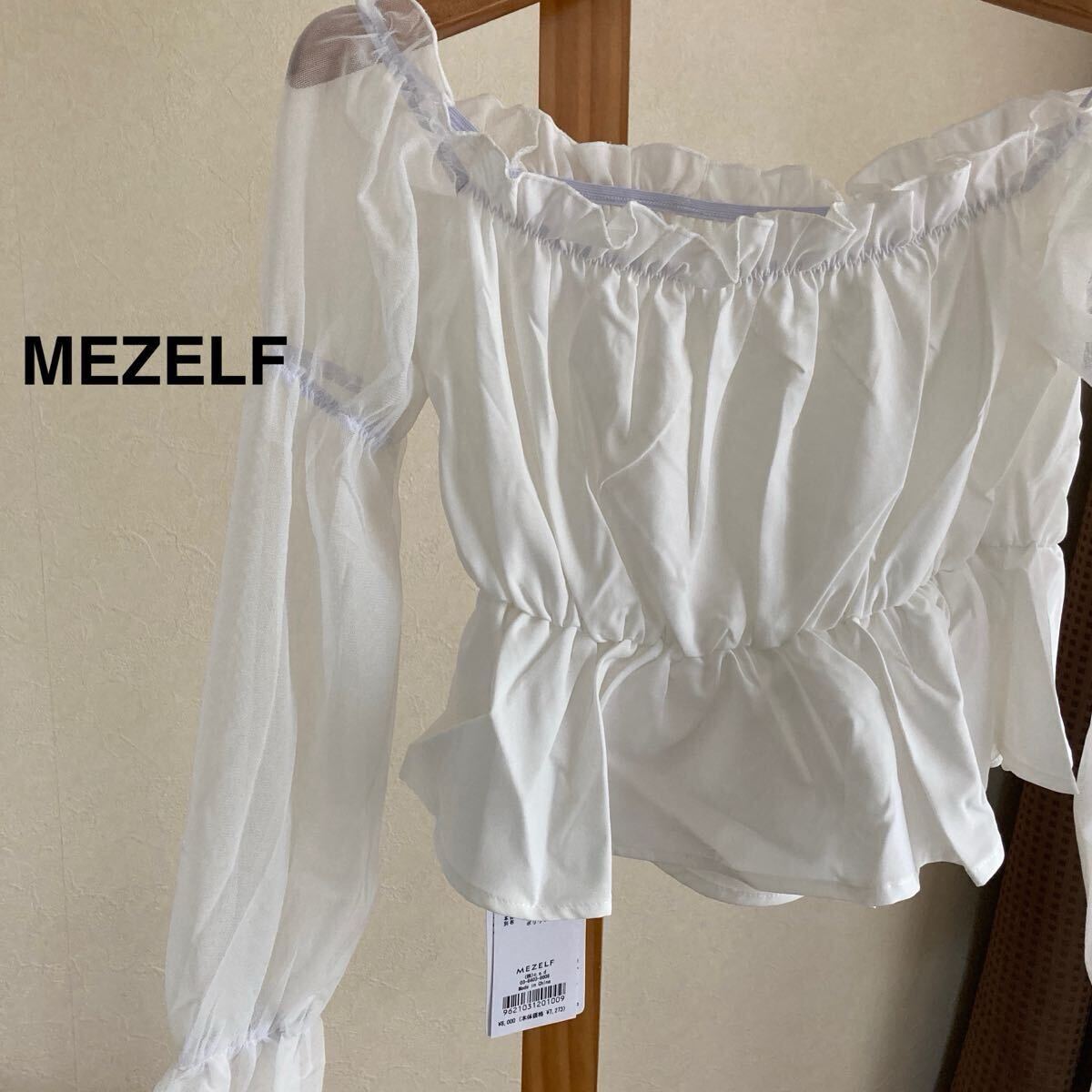 - 定価8000円 【タグ付き】MEZELF アームシースルー オフショルダー トップス 長袖 ブラウス 白 ホワイト フリーサイズ ショート丈