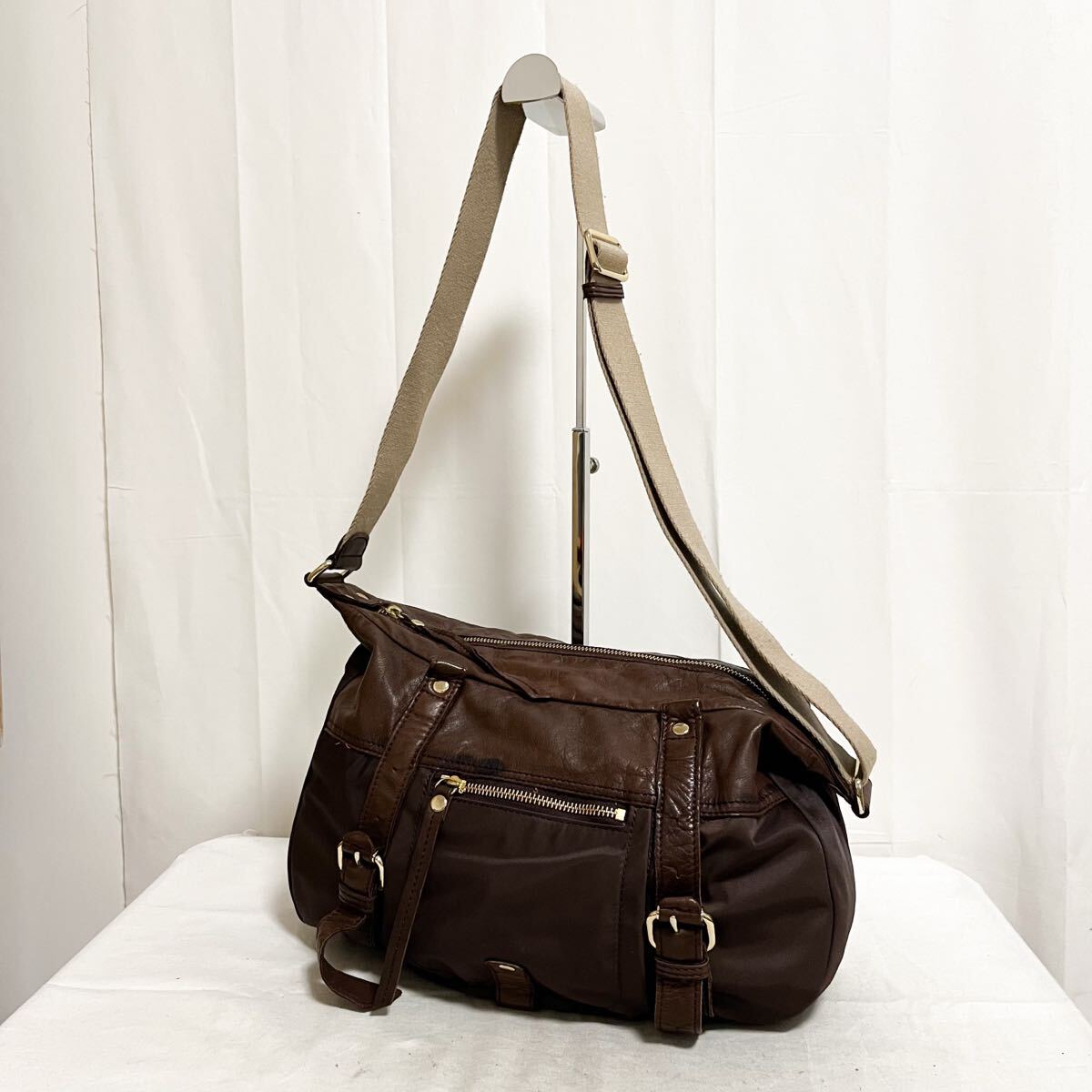 - 和821★ SAZABY サザビー ショルダーバッグ 斜めがけ レザー 切替 ブラウン レディース