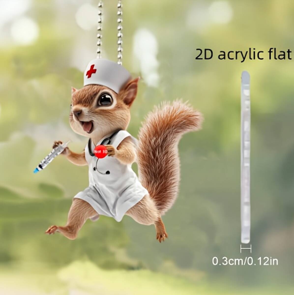- キーホルダー リスの看護師 アクリル 平面 2D ナース 走る小動物 アクリル 8cm 吊り下げ かわいい おもしろ アニマル バックミラー t7942