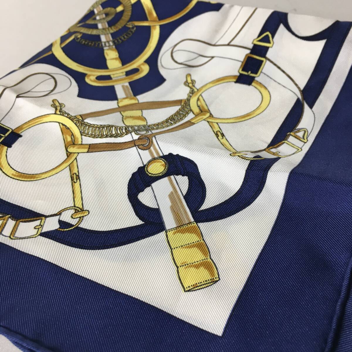 - 77B203|美品|エルメス プチカレ 42 スカーフ シルク ネイビー