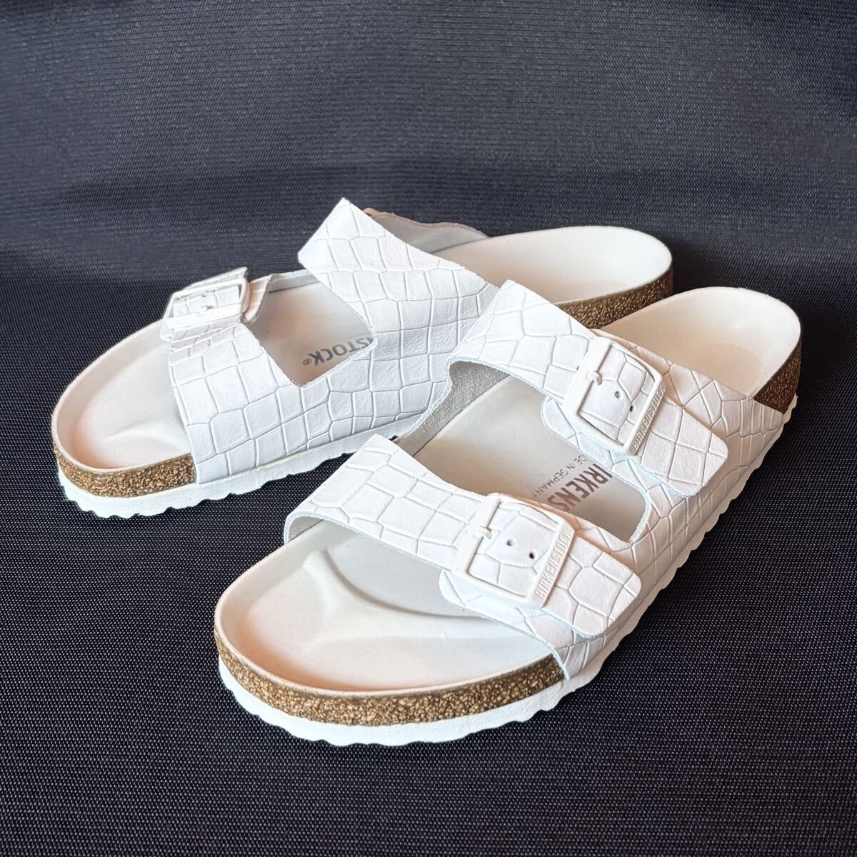 - 【新品未使用】BIRKENSTOCK Arizona ビルケンシュトック アリゾナ サンダル スライド クロコダイル レザー メンズ 43 28cm 白/WHITE 正規