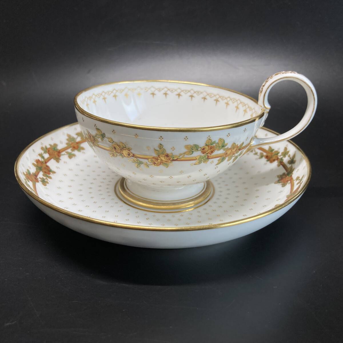 > SEVRES セーブル 1852年 白磁に薔薇文 金彩散らし カップ&ソーサー バラ ローズ フランス アンティーク 19世紀