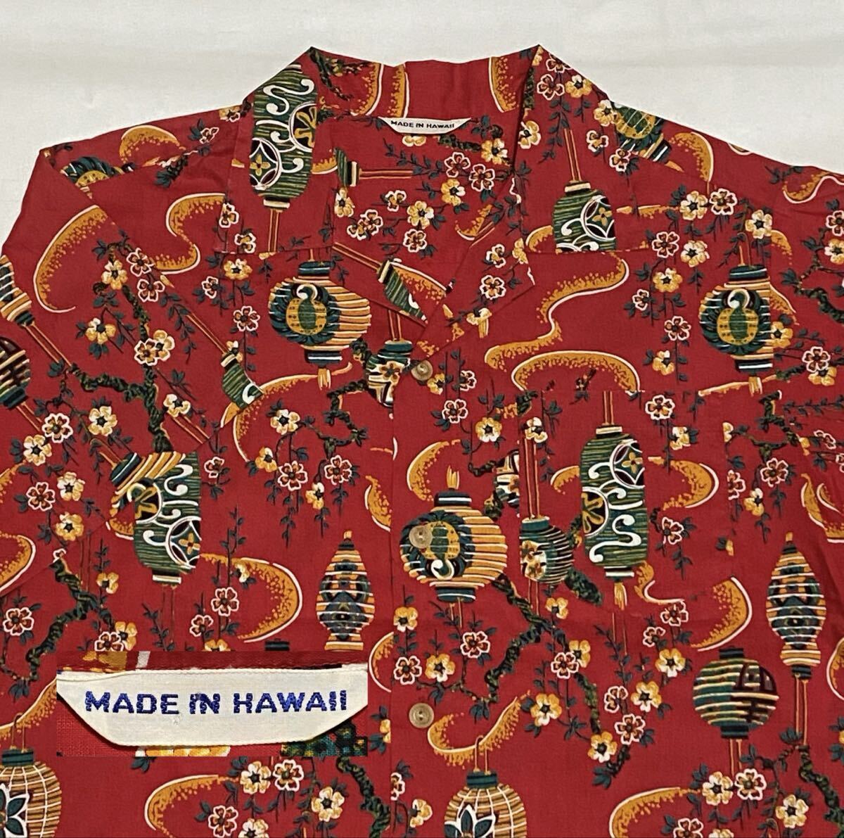 > 50's MADE IN HAWAII 提灯 ちょうちん 和柄 コットン ハワイアン アロハシャツ ビンテージ古着 50年代 60's vintage プリント 40's