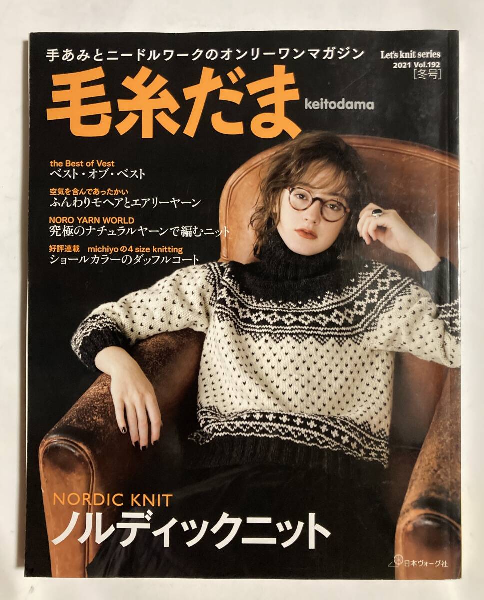 > 毛糸だま(2021Vol.192[冬号])ノルディックニット:風工房,河合真弓,岡本啓子…/ふんわりモヘアとエアリーヤーン/アラン模様の靴下…