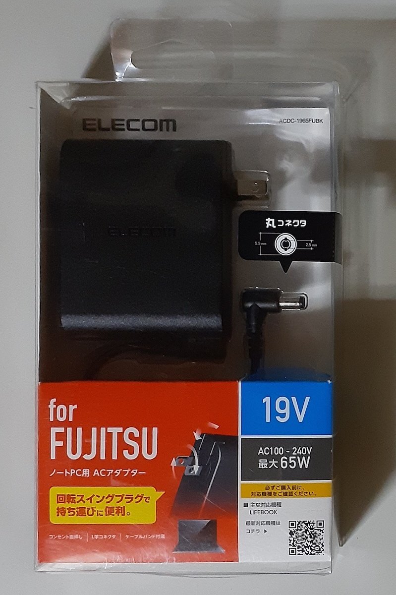 > 6496 ELECOM ACアダプタ ACDC-1965FUBK 19V 65W 富士通ノートPC用 丸型コネクタ 回転スイングプラグで持ち運びに便利