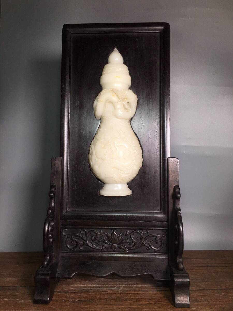 - 白玉原石 秘藏 白檀 に白玉をはめ込む 清代 老玉 新疆 唐物 古玉彫 天然石 稀少珍品 古美術 古賞物 古置物 旧蔵 玉佩 裝身具 吊墜 816