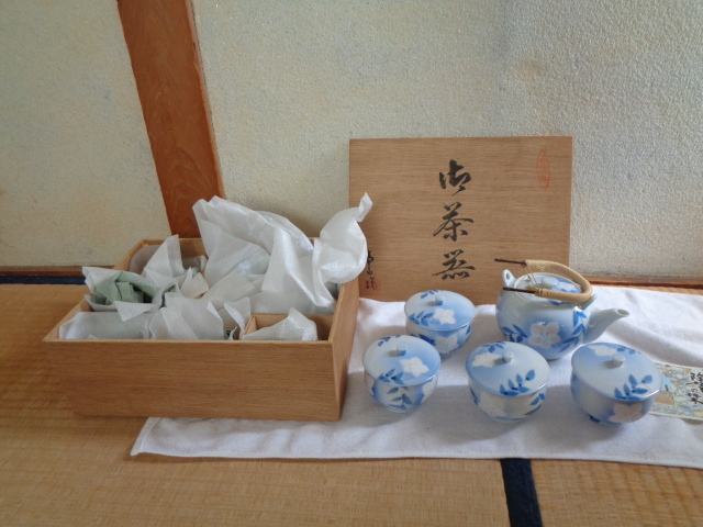 - 有田焼 御茶器/茶器セット-急須&湯呑4個/高山 作/木箱入未使用美品-長期保管品:湯呑1個欠品(本来は5個揃)/