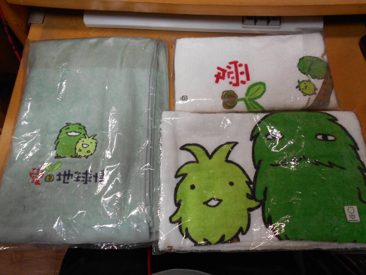 - EXPO 2005 AICHI JAPAN 愛知万博 愛・地球博 モリゾー キッコロ タオル 3種3枚 刺繍入 バスタオル ウォッシュタオル 中日新聞 新品 非売品