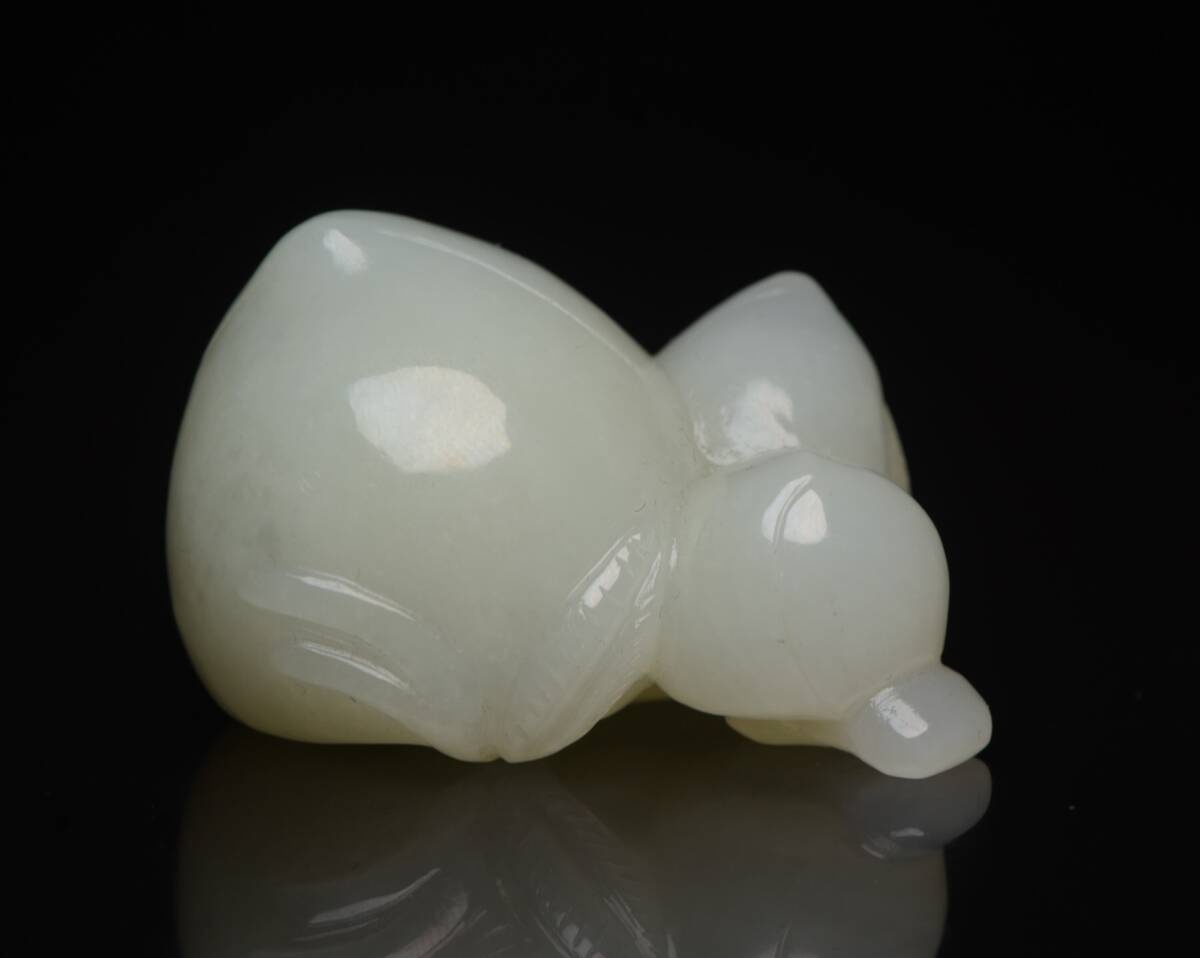 - 『館蔵珍品 和田玉製 細密彫 寿桃 置物 賞物』稀少珍蔵品 古賞物 貴重物品 収蔵品 中国古美術 時代物 古董品