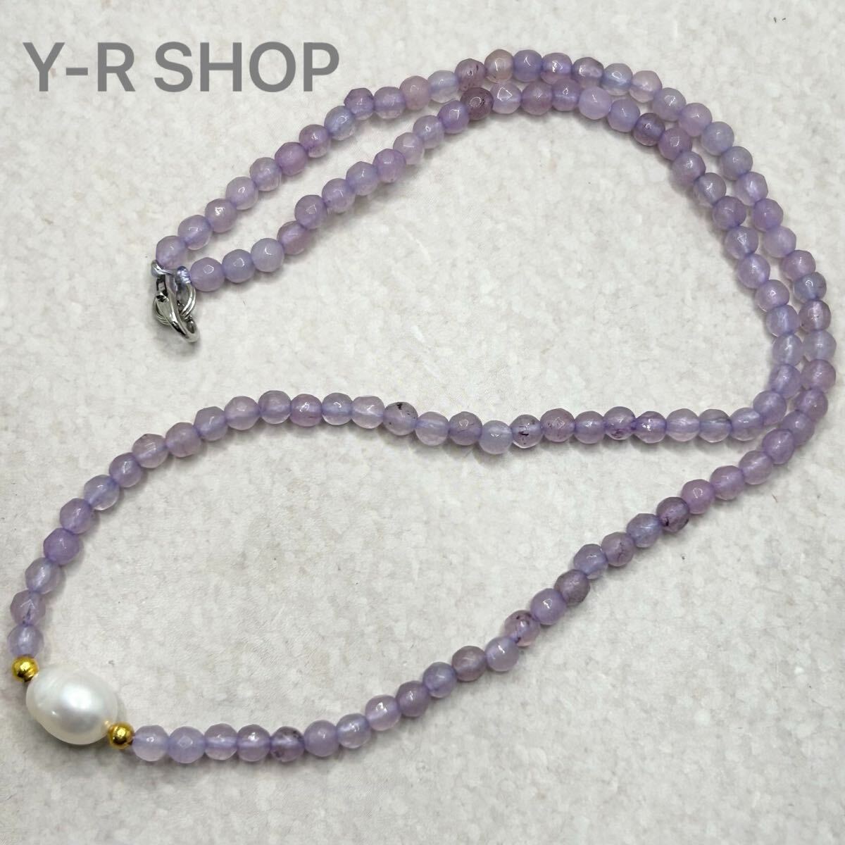 - 天然石★ラベンダークォーツと淡水パールのネックレス★レディースペンダントシルバーアクセサリーカラーストーンエスニック新品宝石Y-R