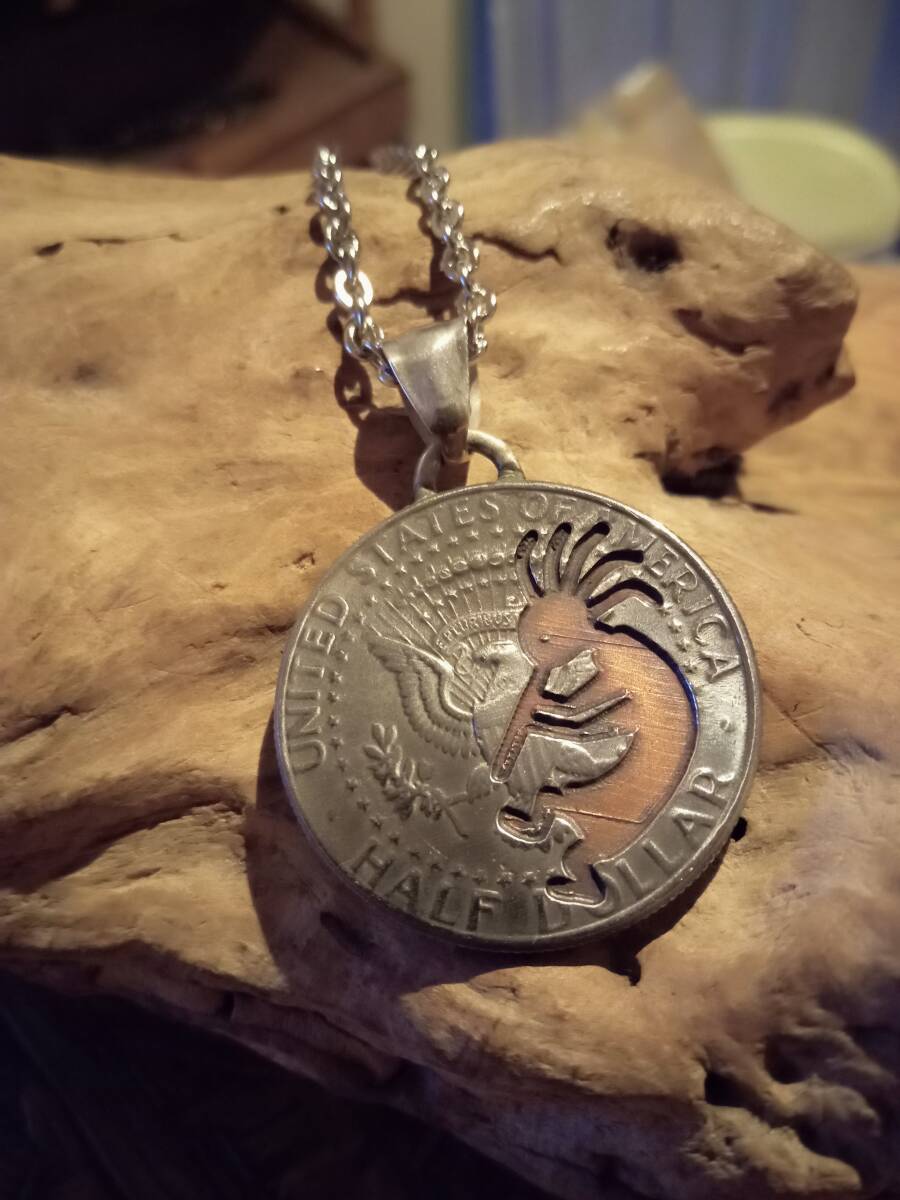 - アメリカ硬貨,コイントップ,ココペリ,妖精,ペンダント,ネックレス,インディアン,ネイティブ,アメリカン,クォーターダラー
