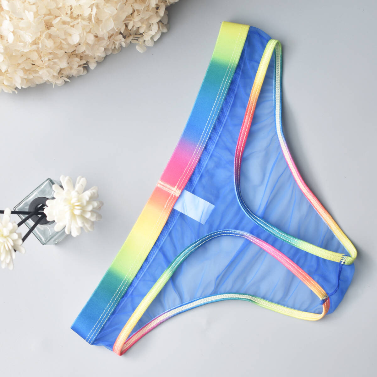 - ★レディース レインボーシースルーポーチ Tバックブリーフビキニショーツパンツ★S青7