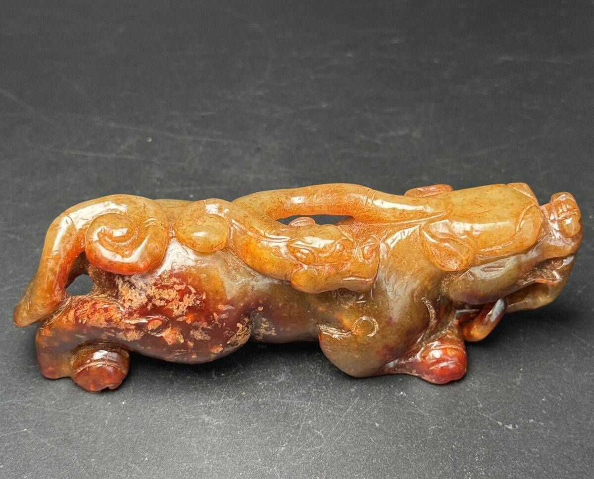 - 秘藏 清代 和田玉 高古玉獣 唐物 古玉彫 天然石 稀少珍品 古美術 古賞物 古置物 旧蔵 玉佩 裝身具 吊墜 817