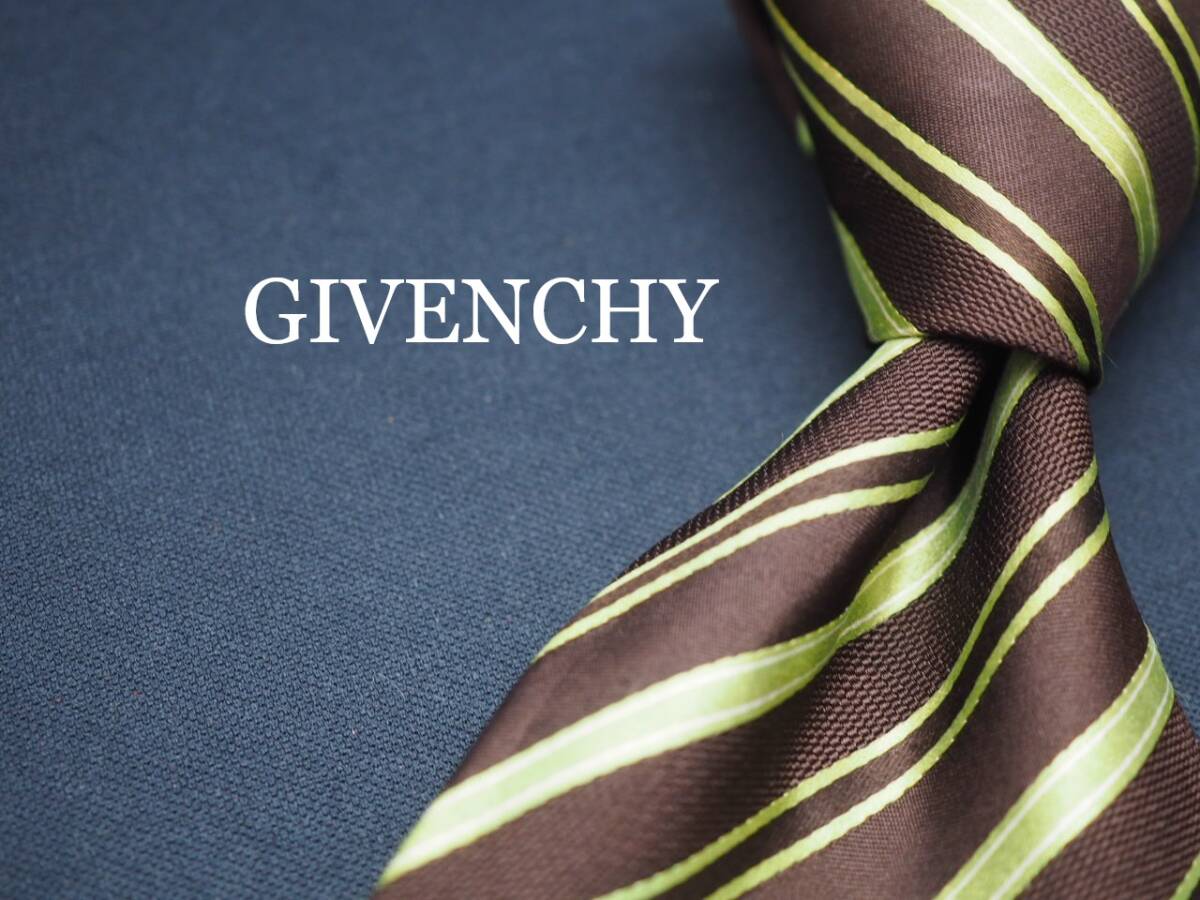 > 美品【GIVENCHY ジバンシイ】 F1386 ブラウン 黄緑系 SILK ブランド ネクタイ 古着 良品