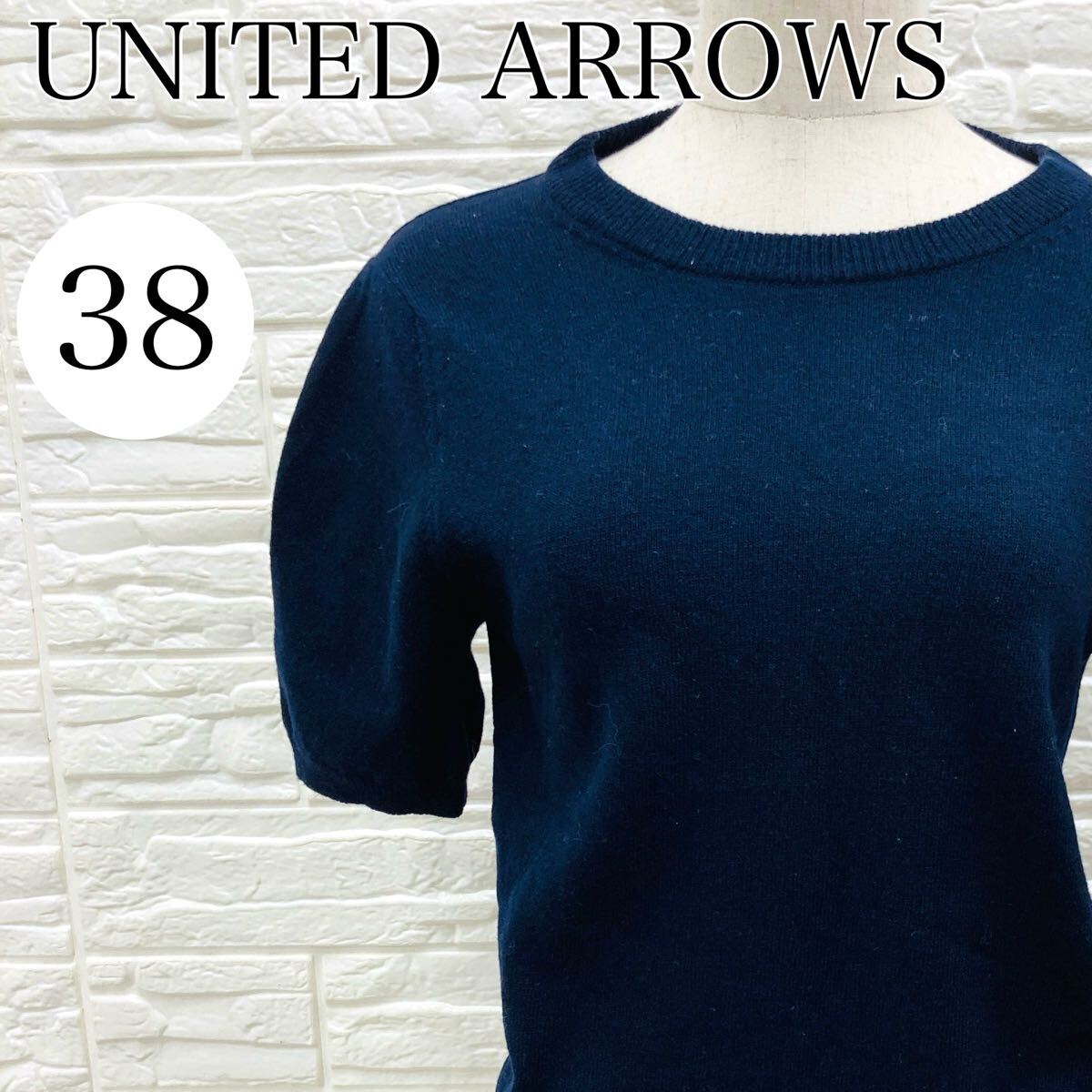 - 【AA4225】 UNITED ARROWS ユナイテッド アローズ 38サイズ トップス トップス カットソー 半袖 クローズドネック ネイビー ウール100%