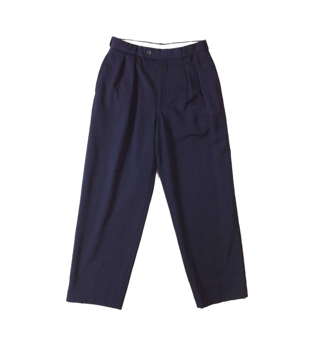 > マーガレットハウエル MARGARET HOWELL ウール ツータック パンツ スラックス サスペンダーボタン ダークネイビー系 日本製 メンズ 73cm 31