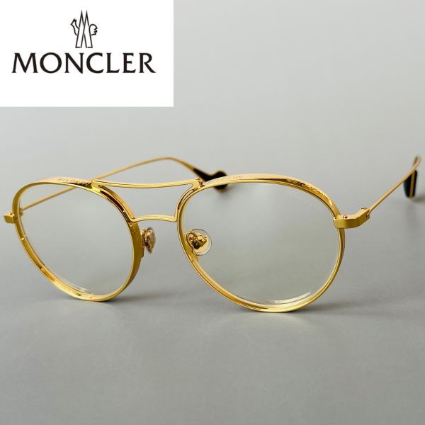 > モンクレール メガネ MONCLER アジアンフィット ボストン 新品 ツーブリッジ ゴールド 金 メンズ レディース 眼鏡 メタル 伊達めがね