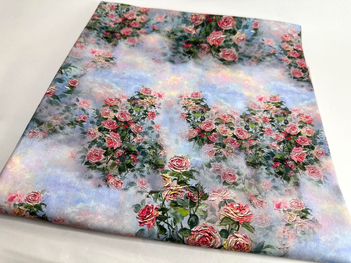 - USAシーチング綿生地幅110cm×50cm.油絵風.薔薇樹