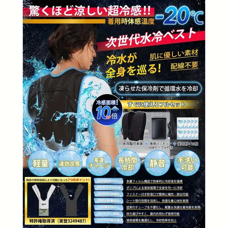 - 新作超強冷感水冷ベスト10000mAh大容量男女兼用熱中症対策最大30時間保冷アイス通気作業汗臭を抑える釣り農業等等ファンだけじゃないので☆