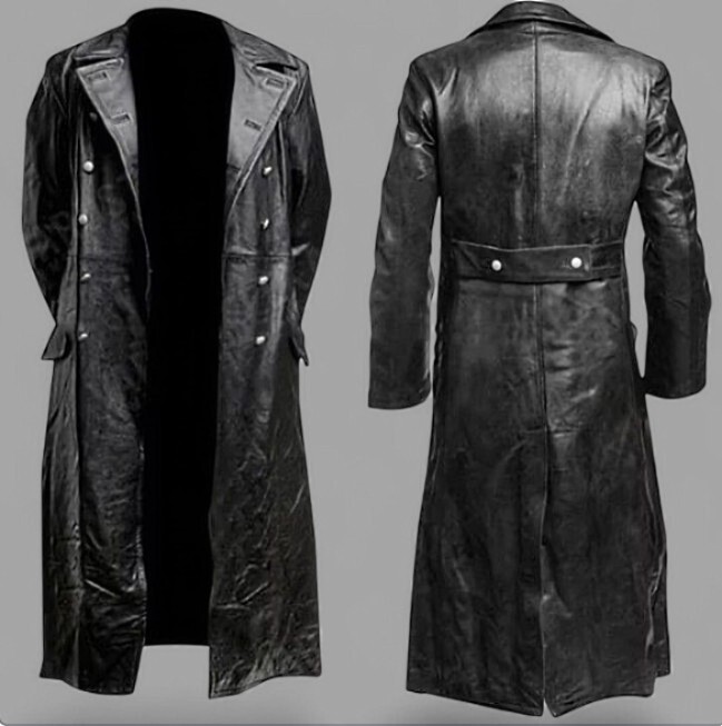 > ★未使用 WW2 ナチス ドイツ軍 将校用 レザー トレンチ ロング コート ブラック 兵隊 戦車兵 軍服 黒 8サイズ有 兵服 ミニタリー サバゲ