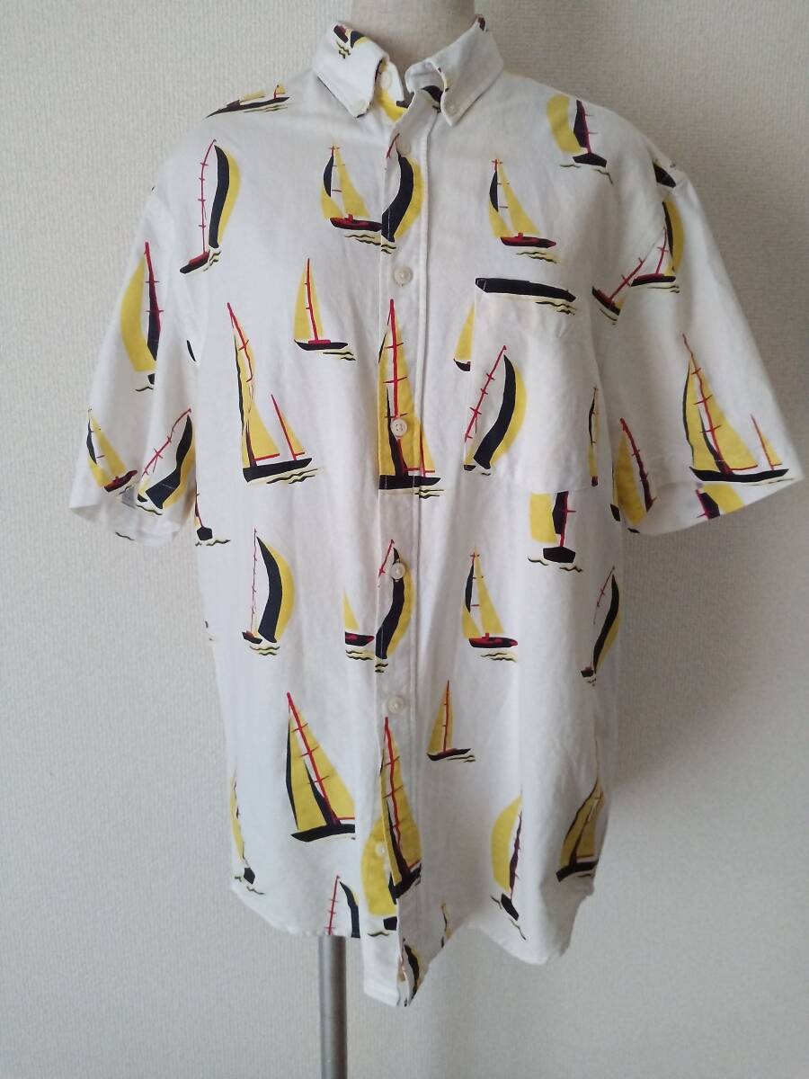 - ⑦ H&M ポルトガル購入 ヨット柄 プリントシャツ 半袖シャツ 船 柄シャツ ボタンシャツ ボタンダウン ポケット 黄色 イエロー