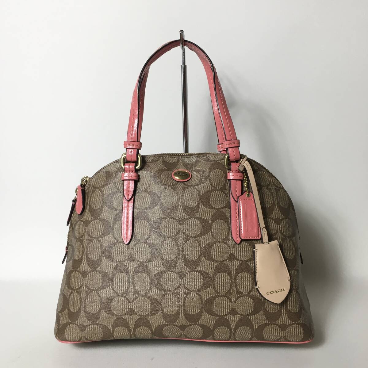 - 78B25|美品|コーチ シグネチャー ハンドバッグ ピンク