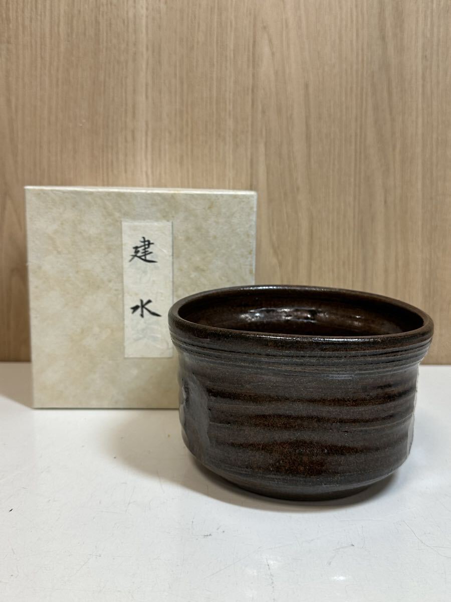 - Y08027 瑞光窯 建水 瀬戸釉 茶こぼし 茶碗 茶道具 未使用品