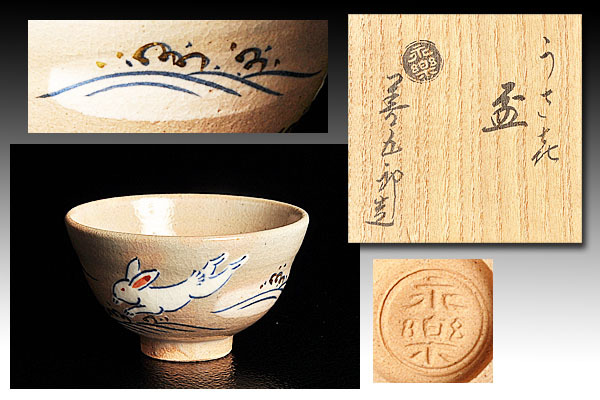 - 茶道具■荒波うさぎ盃■酒盃■共箱■永楽善五郎■検裏千家魯山人