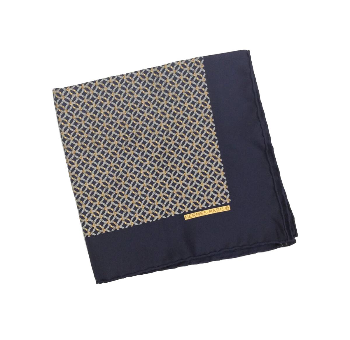 - HERMES エルメス カレ40 プチカレ スカーフ チーフ シルク フランス製 ネイビー 柄 送料250円