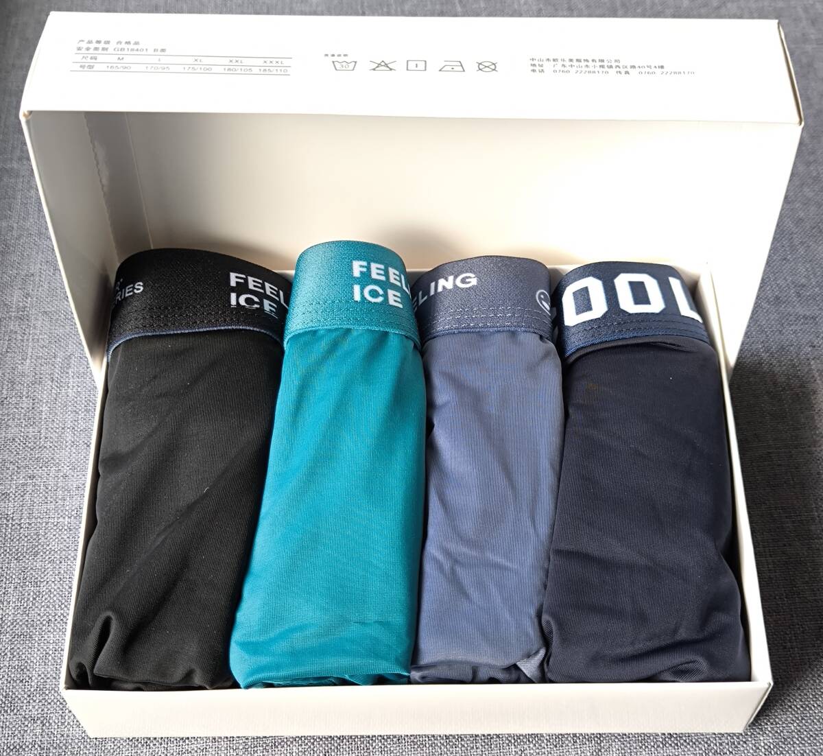 > 【COOL AIR SERIES+ 4枚組 2XL約76cm~86cm】暑い夏に最適★4色セット★清涼感抜群 アイスシルクボクサーパンツ 伸縮性・通気性・抗菌作用