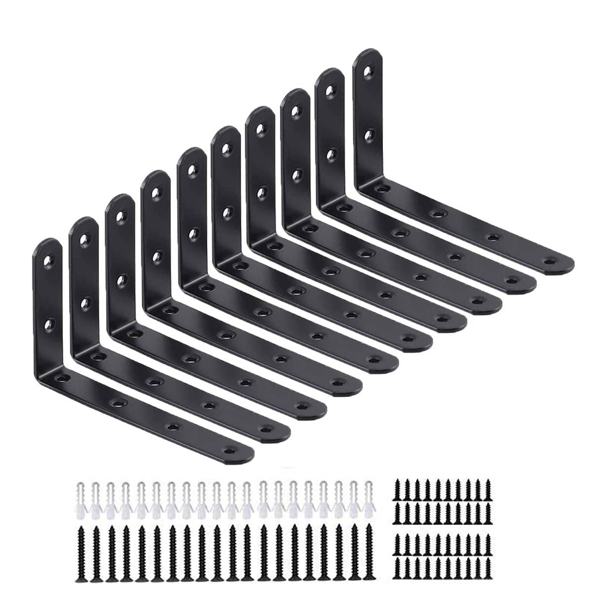 > OEEKOI アングルブラケット ステンレス製 ブラケット金具 棚受け金具 l字金具 棚受け ステンレスネジ 付 (ブラック 10