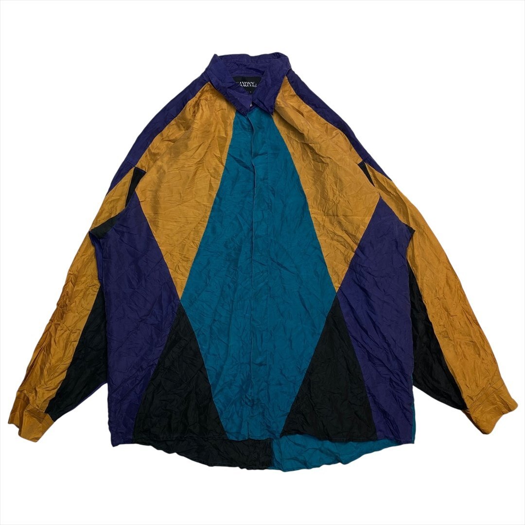 - Vintage SAXONY クレイジーパッチワーク柄 シルク シャツ 長袖 メンズ XL 柄 古着 レギュラーカラー ビンテージ ヴィンテージ