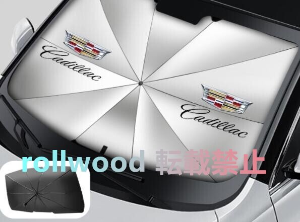 - 新作 キャデラック 傘型 高級 サンシェード 車用 日よけ フロントカバー ガラスカバー 折りたたみ式 6層構造 UVカット99%★144x73cm★
