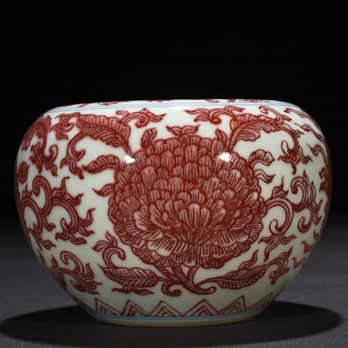 - 秘藏 清時代 康煕年制 釉里紅 絡枝花卉紋 リンゴ洗い 時代物 汝窯 唐物 陶磁器 中国美術 高さ9 cm 幅13 cm 古物保証 819