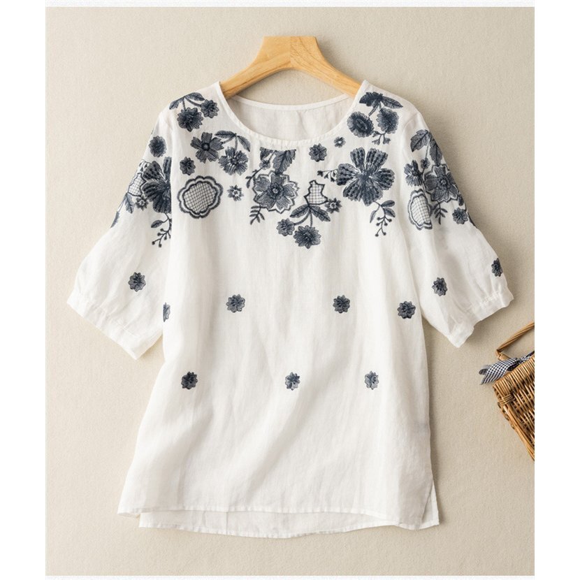 - シャツ ブラウス レディース 綿麻 刺繍シャツ リネンシャツ ブラウス 春 夏 チュニック 大人 刺繍 トップス 新作 可愛いシャツM~2XL