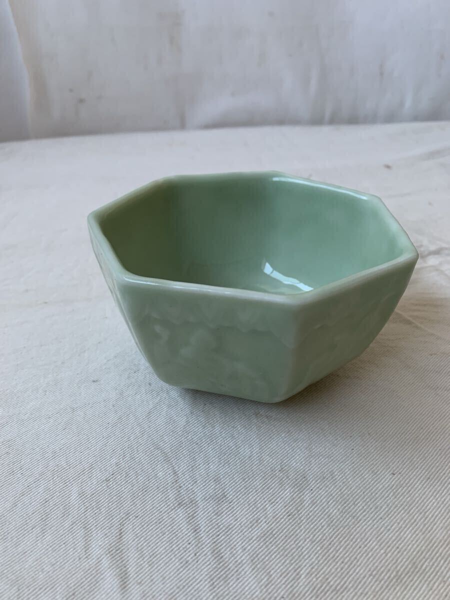 > 旧家蔵出し 美品 陽刻デザインが素敵な七角形鉢 骨董古物古道具古美術青磁アンティークレトロインテリアディスプレイコレクション和食器