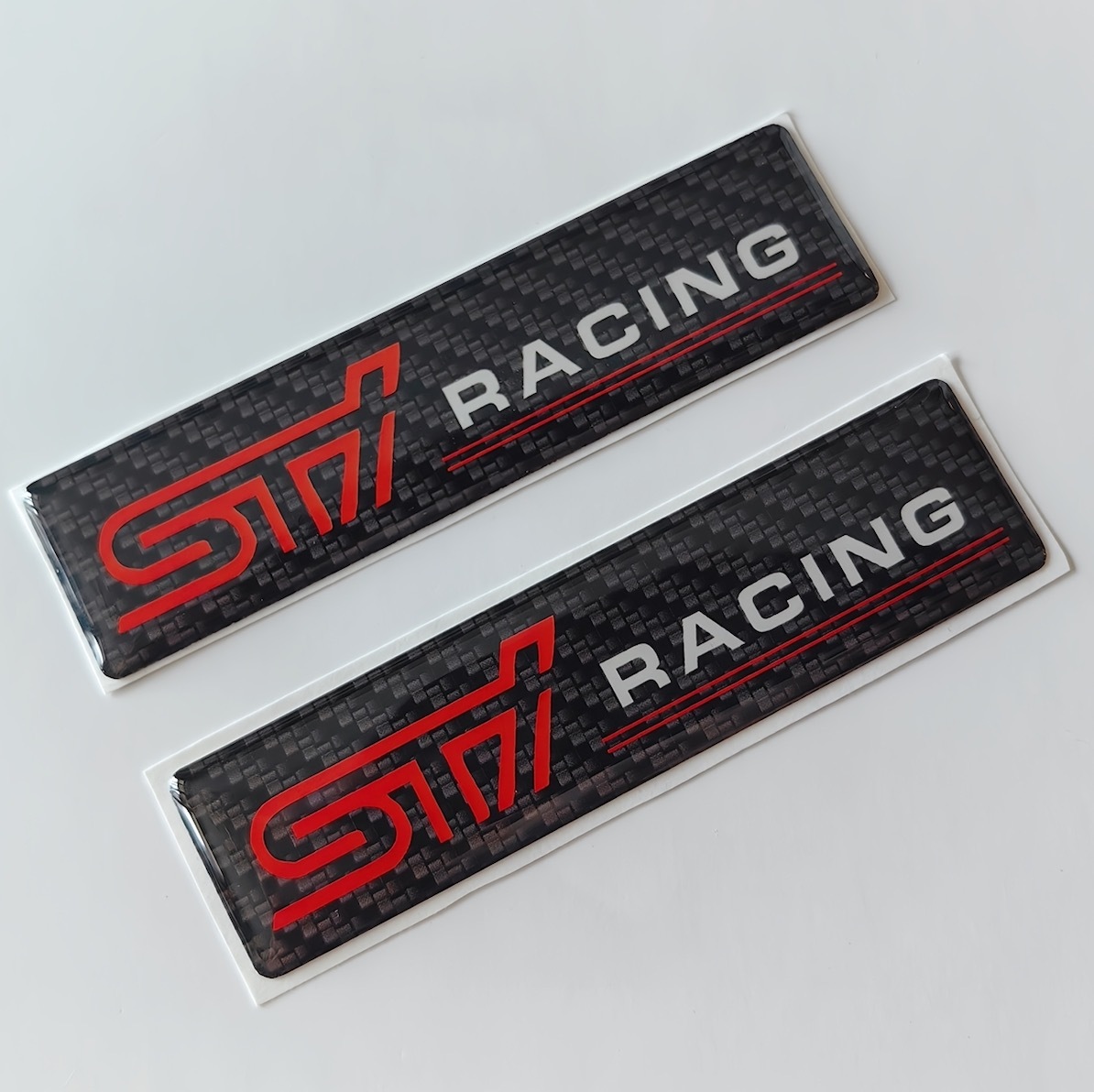 > 2個セット エンブレム STIレーシング ステッカー 車用 8cm ブラック レッド 貼り付け 樹脂 シール 3D 立体 バイク ノートパソコン t8010