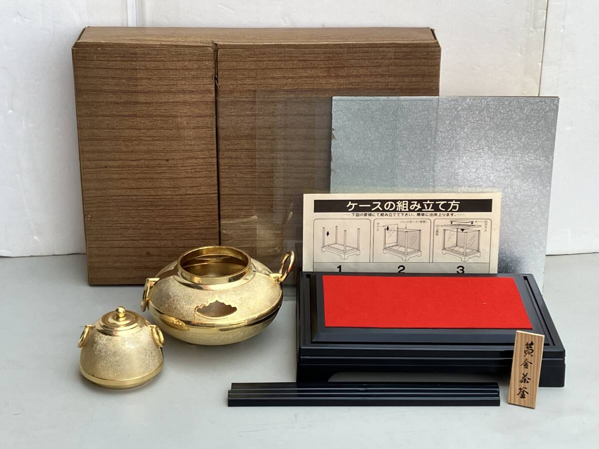 - ★未使用品★黄金茶釜 24KGP ガラスケース付き 招福 開運
