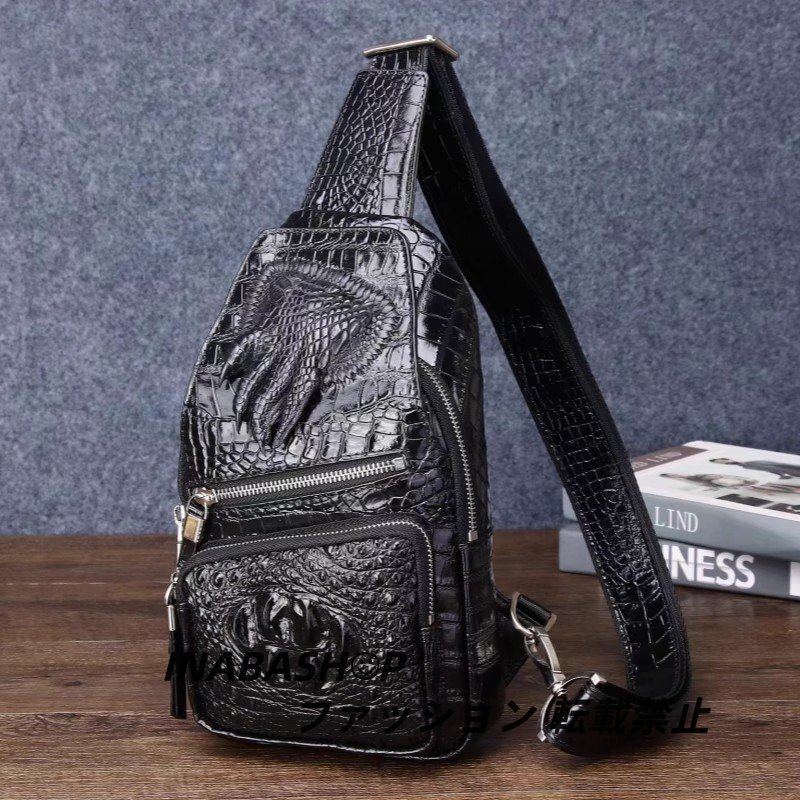 - ワニ革 メンズバッグ 大容量 本革 ワニ爪 トレンディ ビジネス ワンショルダー 斜めがけ チェストバッグ