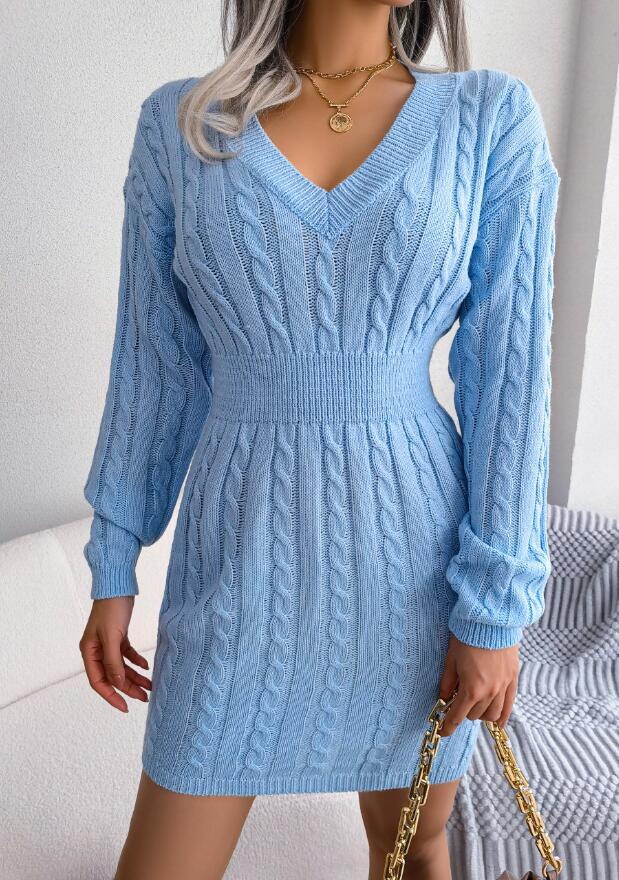 > 320 ワンピースladiesレディース ◇魅惑Styleセクシー 新入荷 ◇ ニット素材 Vネック ケーブル編み 水色