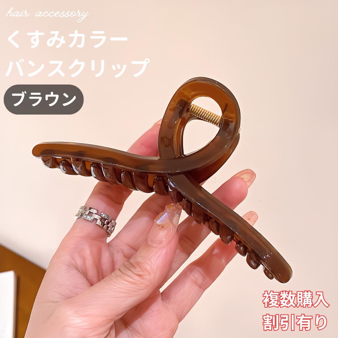 - バンスクリップ リボン ヘアクリップ ブラウン ヘアアクセ バレッタ 髪留め バレッタ リボン