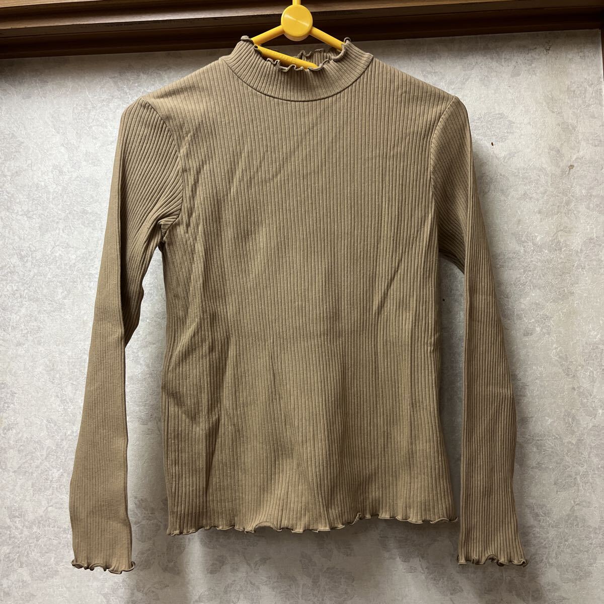 - ★シャンブルドゥジャーム★長袖 ベージュ F タートルネック カットソー ハイネック 綿96%ポリウレタン4% フリフリ