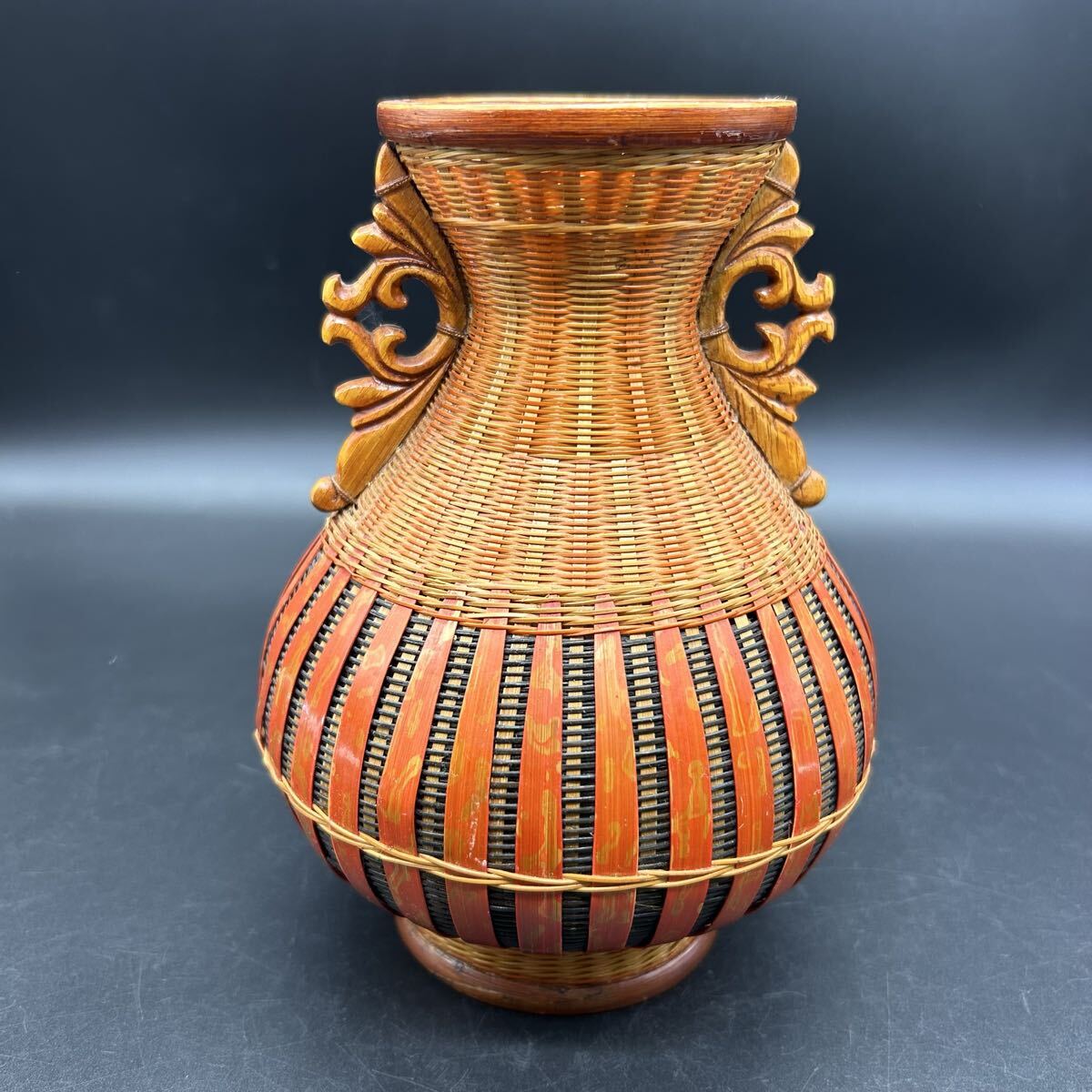 - 竹細工 花瓶 花入 花器 花籠 竹籠 中国美術 置物 エ32-7