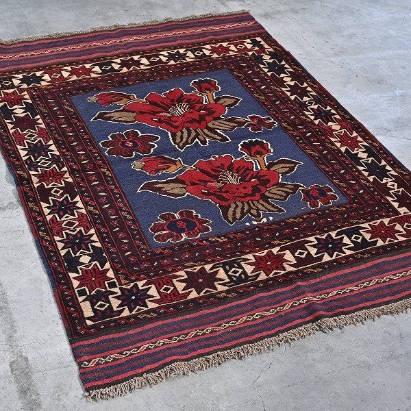 - 新品 未使用 パキスタン製 手織り ウールラグ 絨毯 花柄 フラワー ハンドノット 羊毛 カーペット インテリア リビング 応接室 寝室 P-82