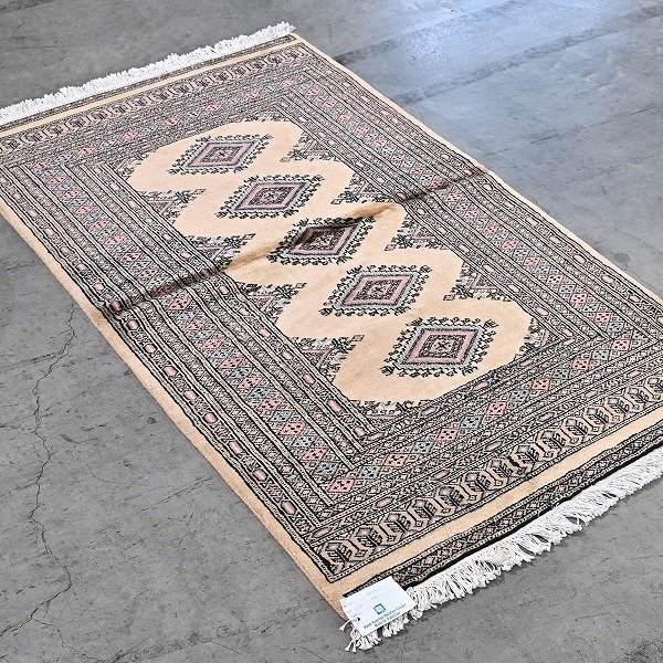 > 新品 未使用 パキスタン製 手織り ウール 絨毯 ハンドノット ギュル文様 羊毛 カーペット マット ラグ リビング ホテル 応接室 P-53