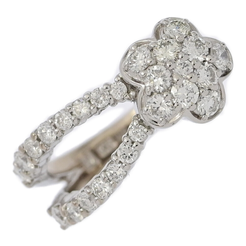 - 0.66ct/Ponte Vecchio ポンテヴェキオ フラワーモチーフ・ピンキー・ダイヤモンド リング・指輪/K18WG/750-5.6g/1.5号/#41.5■583768