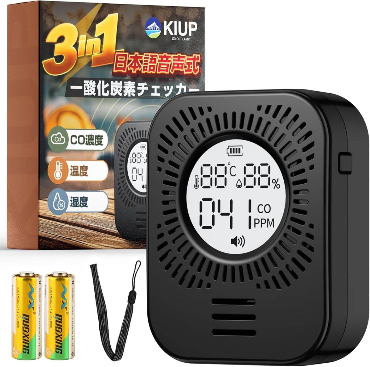 - 【新品】一酸化炭素チェッカー キャンプ用 日本語音声放送 乾電池式 充電不要 一酸化炭素警報器 COアラーム テント用 一酸化炭素中毒防止