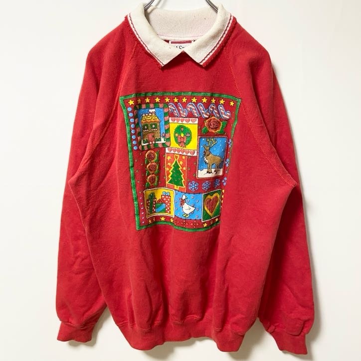 > 古着 used 80s Hanes ヘインズ USA製 長袖襟付きスウェット トレーナー ラグラン ヴィンテージ 赤 XLサイズ