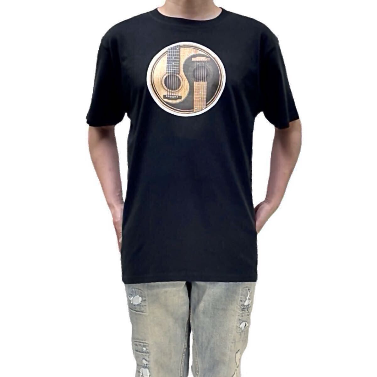 - 新品 アコースティックギター クラシック アコギ サウンドホール 木目ウッド調 陰陽勾玉巴紋 太極図 ビッグTシャツ オーバーサイズ 3XL(4L)
